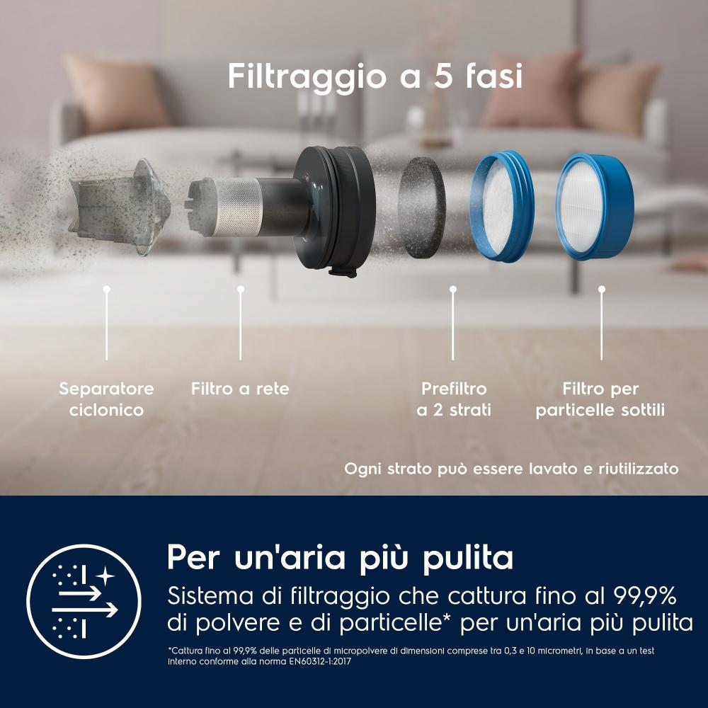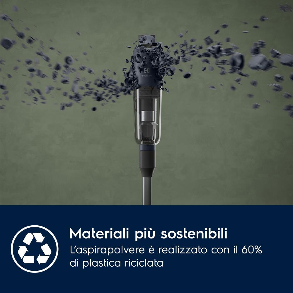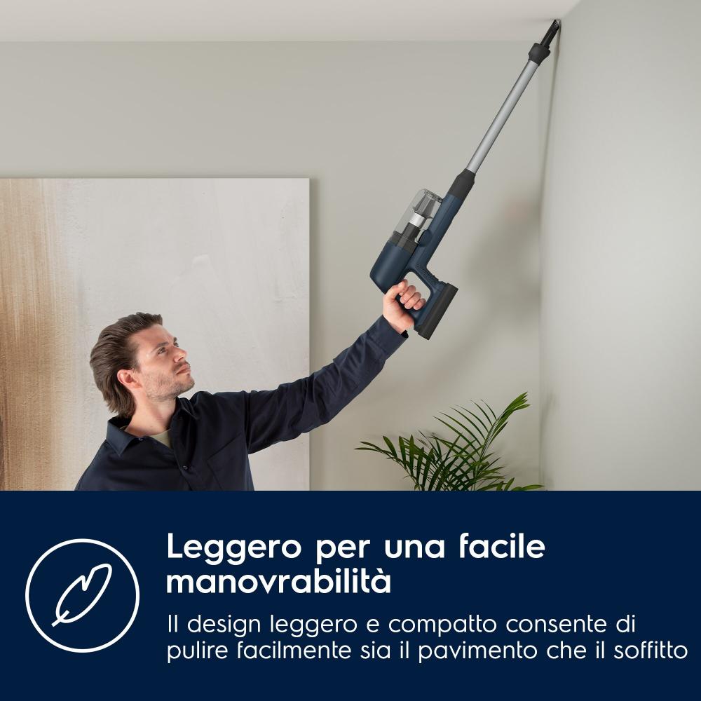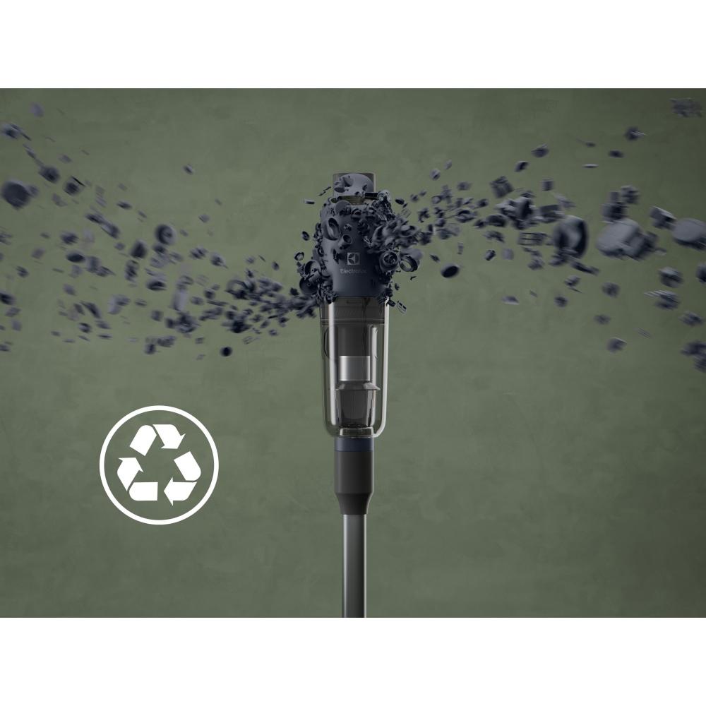 Tyčový vysavač Electrolux 700 Ultimate EP71UB14DB: Výkonný tyčový vysavač s ergonomickým designem Nespoléhejte se na rozmístění a množství zásuvek ve své domácnosti a pořiďte si bezdrátový tyčový vysavač s dobíjecí baterií. V provozu na jediné nabití vydrží až 40 minut (50 minut ruční jednotka) v závislosti na zvoleném výkonnostním režimu. Electrolux 700 Ultimate EP71UB14DB využívá cyklónovou technologii a vysokootáčkový motor pro zajištění precizních výsledků úklidu. 5stupňový filtrační systém zachytí až 99,99 % mikročástic, díky čemuž bude ovzduší ve vaší domácnosti čistší. V těle tyčového vysavače Electrolux 700 Ultimate EP71UB14DB je umístěna praktická ruční jednotka pro úklid nečistot nad úrovní podlah nebo v hůře přístupných místech (např. automobil). 60 % použitých plastů je z recyklovaných zdrojů.Klíčové vlastnosti tyčového vysavače Electrolux 700 Ultimate EP71UB14DBZ těla tyčového vysavače lze snadno vyjmout ruční jednotku pro pohodlnější úklid drobného nebo hůře přístupného nepořádkuBezsáčkový vysavač se systémem cyklónového...