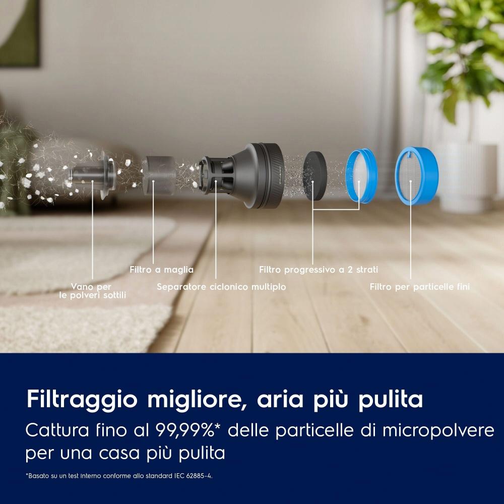 Tyčový vysavač Electrolux 800 Ultimate EP82UB25UG: Pohodlné vysávání vaší domácnostiTyčový vysavač Electrolux 800 Ultimate EP82UB25UGNespoléhejte se na rozmístění a množství zásuvek ve své domácnosti a pořiďte si bezdrátový tyčový vysavač Electrolux 800 Ultimate EP82UB25UG s dobíjecí baterií a mopovací hubicí pro snadné vytírání. V provozu na jediné nabití vydrží až 90 minut v závislosti na zvoleném výkonnostním režimu. Electrolux 800 Ultimate EP82UB25UG využívá 6stupňový filtrační systém, se kterým zachytí až 99 % částic* a udrží vaši domácnost v čistotě. *Na základě interního testu podle normy IEC 62885-4. Dosáhněte maximální čistoty s tyčovým vysavačem Electrolux 800 UltimateElectrolux 800 Ultimate EP82UB25UG vysaje až 99 %* prachu na tvrdých podlahách, a zajišťuje tak účinné a důkladné čištění. S hubicí PowerPro odpadá výměna hubic pokaždé, když najedete s tyčovým vysavačem Electrolux na jiný povrch. Nyní vám bude stačit na celou domácnost jediná výkonná hubice, která je vybavena motorem s dlouhou životností a...