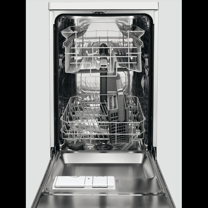 Vlastnosti dolního koše: 2 rozložitelné talířové poličky