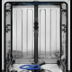 Horní košík má 2 skládací držáky, 2 skládací drátěné držáky pro skleničky, 2 měkké špičky, 6 měkkých špiček pro vinné sklenky, skládací poličky na šálky, Plastové držadlo