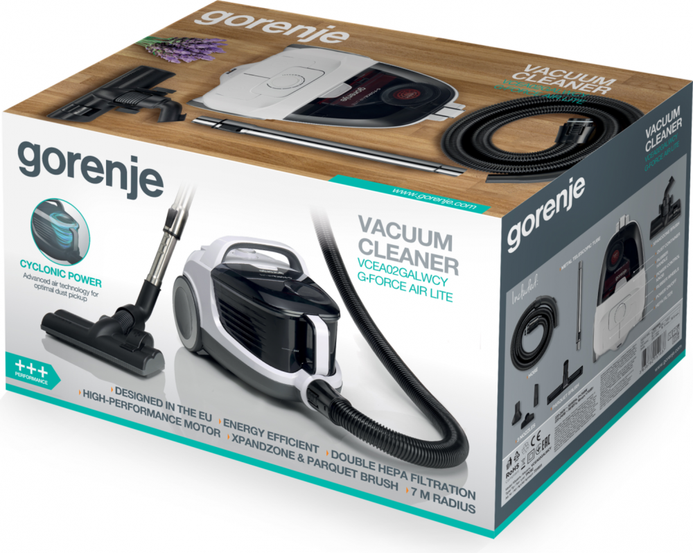 Bezsáčkový vysavač Gorenje VCEA02GALWCY:Bezsáčkový vysavač GORENJE bude šikovným pomocníkem při každodenním úklidu. Jednoduše se vypořádá s povrchy jako koberce, tvrdé podlahy, měkké povrchy, lino, dřevěné podlahy a plovoucí podlahy. Špína a prach se ukládají do vyjímatelné nádoby o objemu 3,3 l, kterou stačí po použití vysypat. Vysavač GORENJE jednoduše ovládáte s pomocí tlačítek na samotném přístroji. Filtrační systém obsahuje HEPA filtr. HEPA filtr je skvělou volbou pro ty, kteří trpí alergiemi nebo astmatem, protože dokáže účinně odstranit alergeny, jako jsou prach, pyl a roztoči. Pomáhá zlepšit kvalitu vzduchu v domácnosti. Jeho maximální hlučnost činí 67 dB, a proto nebude hlučnější než zvuky z rušné ulice. Zásadní přednosti bezsáčkového vysavače Gorenje VCEA02GALWCY Bezsáčkový vysavač GORENJE je příhodný na koberce, tvrdé podlahy, měkké povrchy, lino, dřevěné podlahy a plovoucí podlahy Typ úklidu: vysávání a suché čištění Nádoba na nečistoty je plastová Vysavač nabízí ruční ovládání tlačítky umístěnými na jeho těle Filtrační systém obsahuje