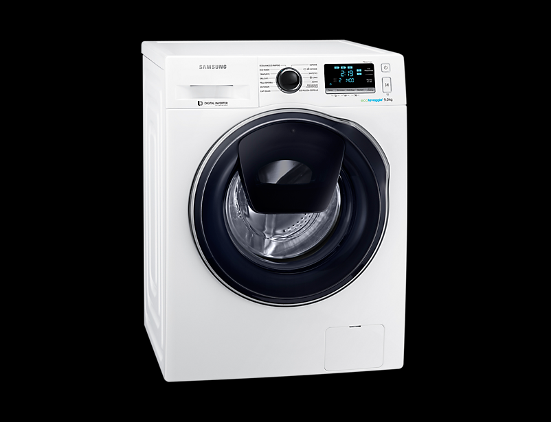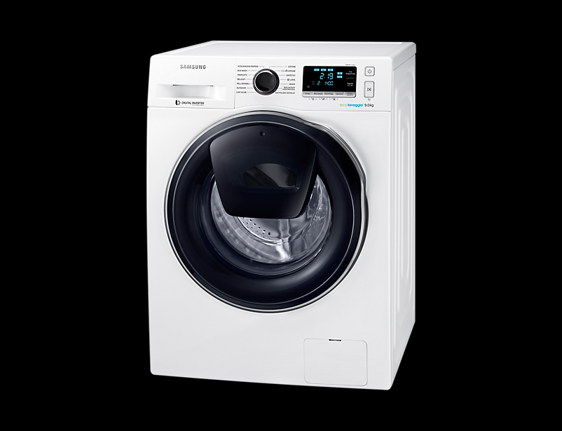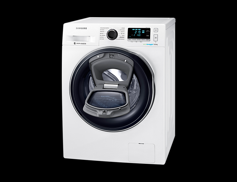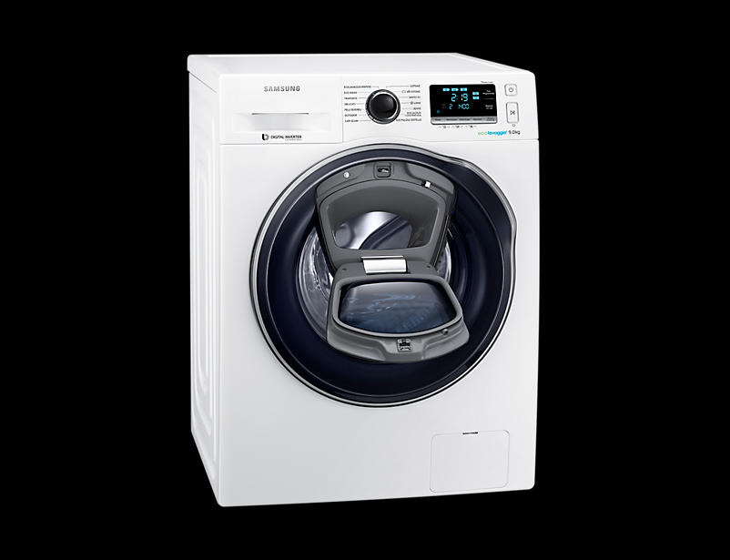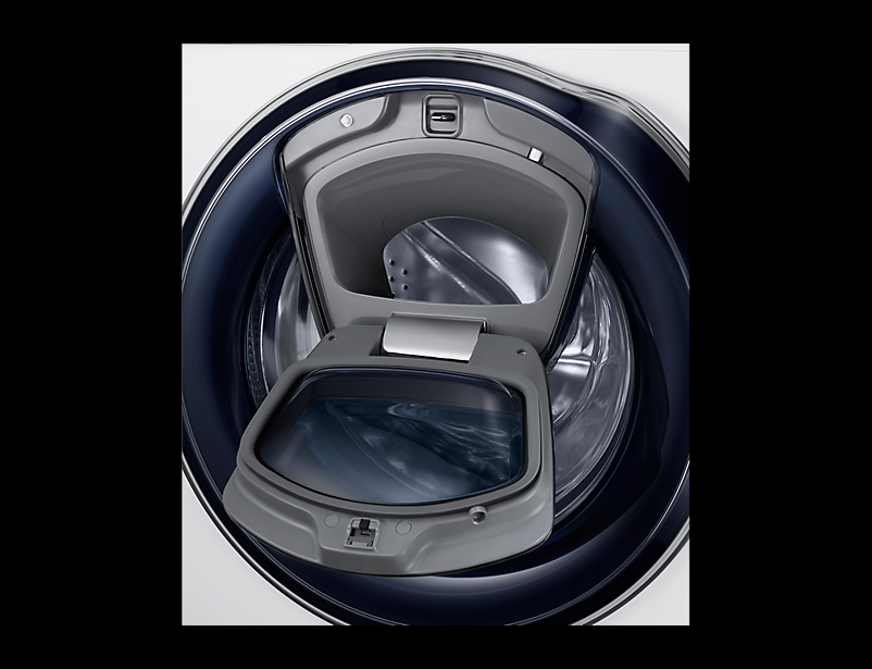 Revoluční funkce AddWash nových praček Samsung přináší řešení v podobě AddWash dvířek. Umožňují přidat oblečení kdykoliv během prací fáze. Stačí zmáčknout tlačítko „pauza“, otevřít AddWash dvířka a pokračovat v praní. Dalším přínosem je možnost přidání prádla nebo aviváže v určité prací fázi, např. během máchání nebo odstřeďování.