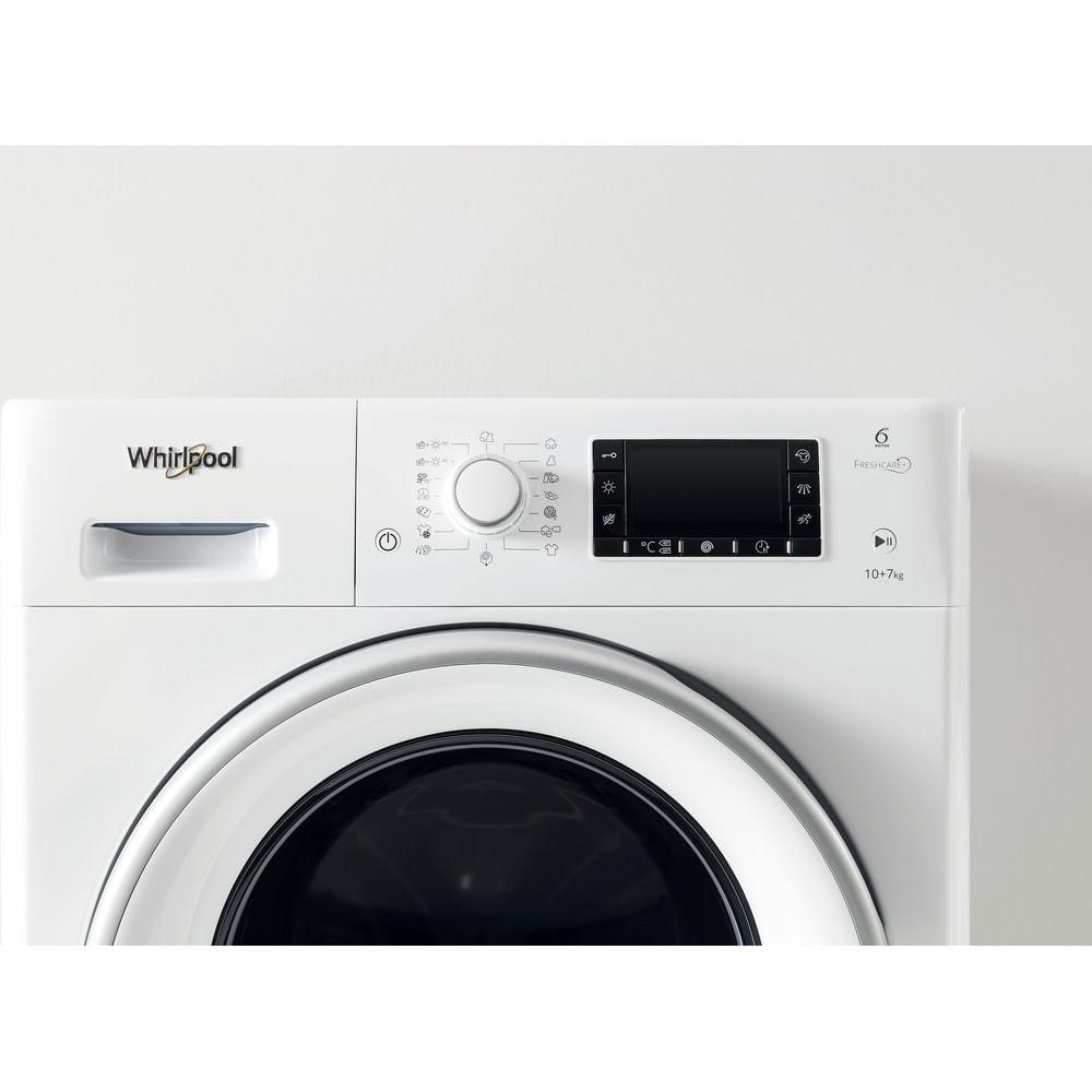 Whirlpool FWDD1071681WS EU představuje kombinovanou pračku se sušičkou v energetické třídě A s kapacitou 10 kg praní a 7 kg sušení. Nabízí přehledný displej se zobrazením funkcí, teploty a času. Je vybavena technologií 6.smysl, která automaticky upravuje prací a sušící cyklus, aby uspořila energii, čas a vodu.